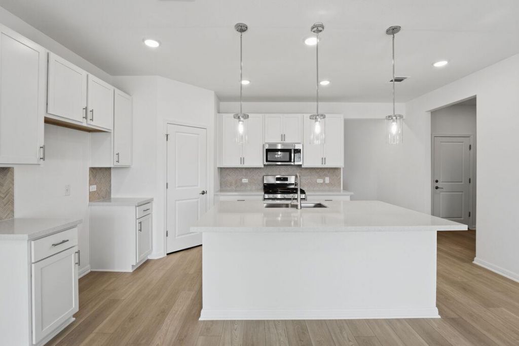 What's Special: 3 Full Bathrooms | Two Bedrooms Down | 1st Floor Primary Suite | Game Room | North Facing Lot. New Construction - Ready Now! Built by Taylor Morrison, America's Most Trusted Home Builder. Welcome to the Sparrow at 104 Childress Street in Emory Crossing. This thoughtfully designed home offers a flexible layout perfect for modern living. Downstairs, enjoy a bright kitchen with an island that opens to a casual dining area, spacious great room, and covered patio for seamless indoor-outdoor gatherings. The secluded primary suite features a serene bath and walk-in closet. The foyer leads to a two-car garage, laundry room, powder room, and a versatile flex space. Upstairs, discover three bedrooms, a full bath, a tech space ideal for working from home, and a cozy game room for relaxing or entertaining. Located in the heart of Hutto, Emory Crossing offers completed amenities including a pool, splash pad, playground, nature trails, and a soccer field. Additional Highlights include: whole house blinds and upgraded front door.