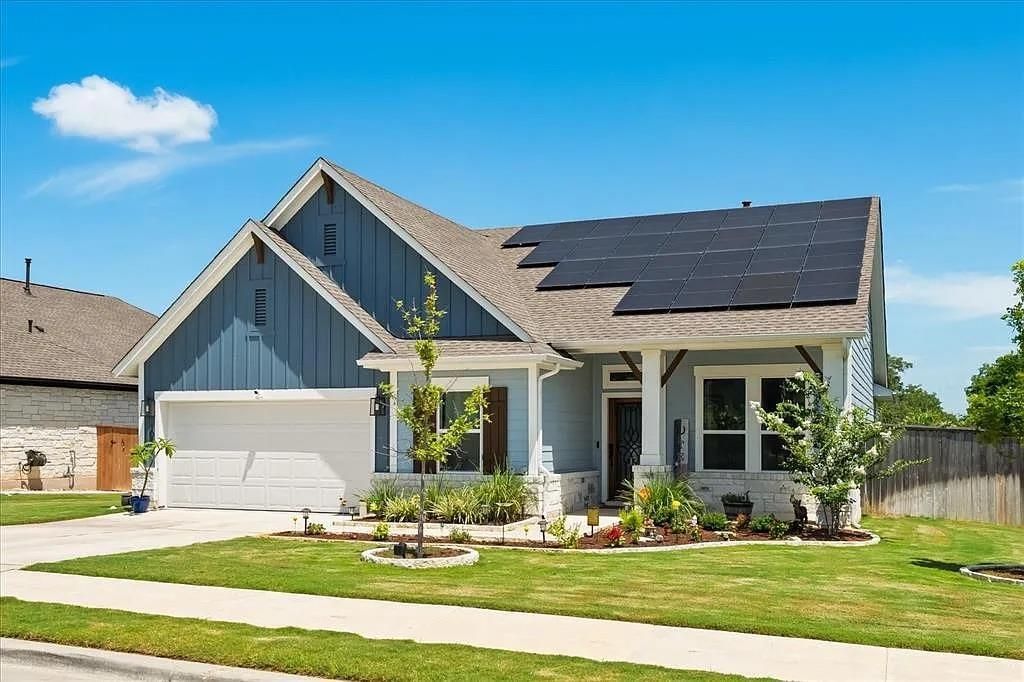 Experience the charm of Bastrop living in this stunning, solar-equipped home! Nestled in a vibrant community with access to pickleball courts, two pools, and an upcoming lake house, this residence is perfect for those seeking both comfort and leisure. 30 minutes from the Tesla factory, 5 minutes from the Boring Company & Starlink. Step inside to find wood floors, upgraded carpeting in the bedrooms and study, and French doors in the study. The open-concept living area is bathed in natural light, creating a warm and inviting atmosphere. The home also boasts a 400+ sqft deck addition to the existing porch. Close access to a recently built elementary school within the community, two playgrounds, and frequent community events organized by the HOA make it ideal for families. Beyond the home, Bastrop is set to become a hub of excitement with a film studio and a domain-like shopping district on the horizon. Don't miss your chance to own a piece of this thriving community!