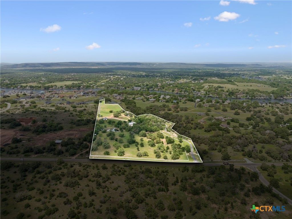 Rarely does an opportunity like this present itself: 20 acres of pure LBJ waterfront bliss! Enjoy a wooden dock with two jet ski slips for your water adventures. For boating enthusiasts, the community marina offers two deeded boat slips. A spacious 60 x 40 workshop with soaring ceilings and two tandem garage doors awaits, ready for your creative pursuits. Equestrian enthusiasts will love the 4-stall horse barn with direct turnout access to the rolling acreage. Indoors you have stained concrete floors, vaulted ceilings, and abundant natural light that create a welcoming atmosphere. The chef's kitchen is sure to delight, and the secondary bedroom offers cozy bunk beds, perfect for guests. The owner's suite grants access to a covered patio, wired for sound, with a masonry fireplace - the ideal spot to gather around and savor the beauty of the sunset. This is an opportunity unlike any other, where the lakefront lifestyle awaits you with open arms, offering a world of possibilities.