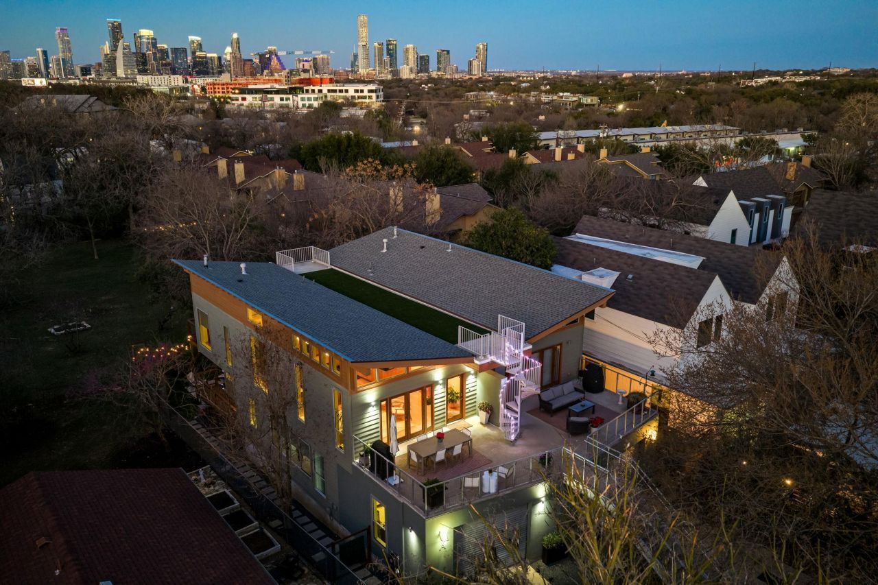 Located on a quiet cul-de-sac, this lightly lived-in Mid-Century style home has been enjoyed as a second home for 9 of the last 11 years. All of the heavy lifting to ensure proper maintenance and enjoyment of the home has been completed during the current ownership. The HVAC, tankless water heater, fencing, and both roofing systems (composition and TPO) have been replaced. Most recently, in June 2025, the exterior was painted and stained. The current owners have added landscaping, fencing, hardscaping, and artificial turf to the backyard. Wine Cooler and Tinted windows have also been added. First Floor- dedicated to the primary bed/bath and study. The third bedroom was converted to a dedicated study with custom-built-in cabinetry and computer stations for two. The primary suite offers a walk-in custom Elfa Closet system, custom draperies, and decorator accents. These spaces are quiet and away from the public areas of the home. The garage is oversized and includes built-in cabinet storage and epoxy floors. Second floor- open concept living, kitchen, and guest suite with private balcony. Bosch appliances include the refrigerator, dishwasher, oven, and 5-burner gas cooktop. GE under-counter wine refrigerator was added recently. All appliances, Washer/Dryer, and all mounted TVs will convey with the home. The large wall-mounted mirror above the stairs will also convey. Windows in the living/kitchen area have been recently tinted. Both levels offer access to outdoor patios and decks. Then there is the rooftop deck. Views to the north of skyscrapers, to the south of tree-tops, and all around... the place we call home... Austin. Sometimes you can see fireworks on the 4th of July or hear music from ACL, but you can always see the stars and walk to amazing restaurants, coffee shops, bars, and breweries. You won't find another one like it!