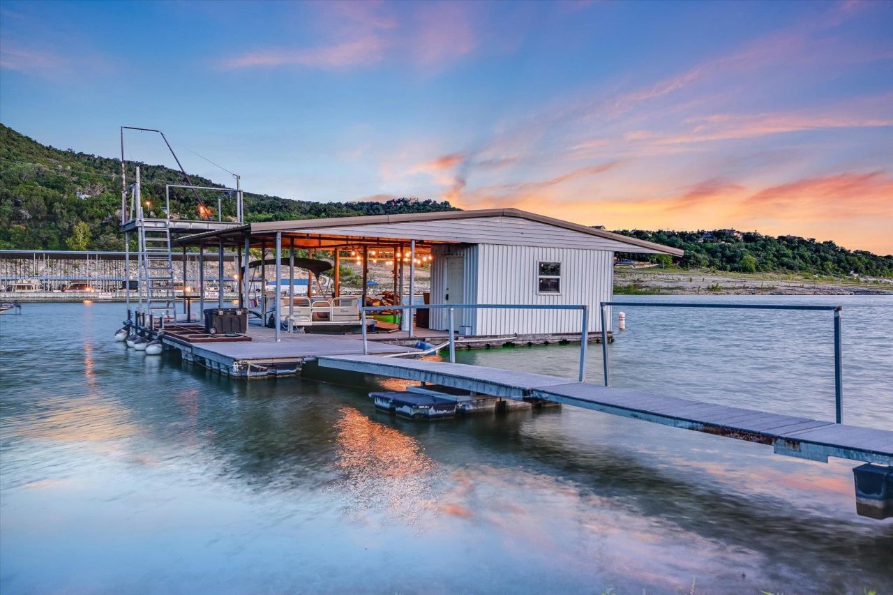 Tucked away in a private, gated community on 8.5 acres of deep waterfront, this Lake Travis home isnt just a place to live, its where memories are made, adventures begin, and every day feels like a vacation. With 4 bedrooms, 4 bathrooms, a designated home office, media room, and an air-conditioned gym spread across 4,200 square feet, this home offers plenty of space to relax, work, and play but that's not all - its what's outside that truly sets this property apart. Imagine long summer days spent in the backyard ? splashing in the large pool, soaking in the hot tub under the stars, or hosting BBQs on the covered patio with room for everyone. A spiral staircase leads you up to a second-story balcony where the sunset puts on a show every evening.Beyond the patio, your private estate unfolds, gated playscape for the kids, acres of land to roam and ride ? whether it's four-wheelers, dirt bikes, or just bare feet in the grass. Fish off the shoreline, explore nature trails, or climb up to the boat dock platform and cannonball into the lake like we used to when we were kids. With a boat slip and two jet ski lifts, the water is always just steps away. This is where you spend weekends paddleboarding, towing the kids on a tube behind the boat, and gathering around a firepit after a full day outdoors. Where birthdays turn into pool parties, lazy Sundays turn into lake adventures, and the driveway has space for all the friends and family who want to come join in and the best part? You dont have to travel far to feel like youve escaped it all. This home is a getaway, every day ? close to the city, but a lifestyle apart. Whether youre looking for a full-time residence or the ultimate weekend retreat, this Jonestown property delivers space, privacy, and that unmistakable feeling of freedom we remember from childhood. Information is deemed reliable but not guaranteed. Buyer to verify.