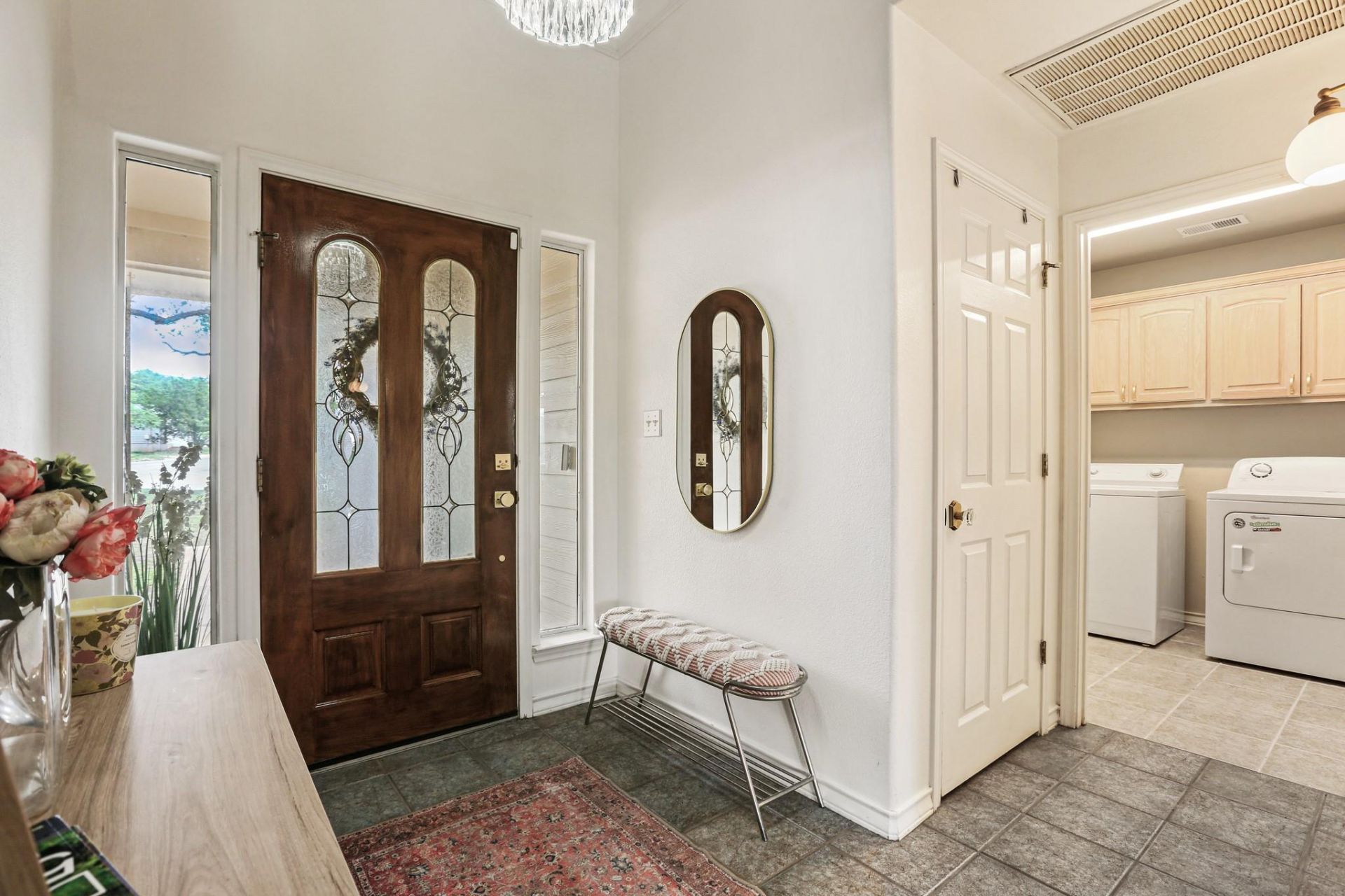 Custom-built one-story 3/2 home, purposefully positioned on a live oak?shaded corner lot for striking curb appeal and a sense of presence as you approach. Located on a quiet, low-traffic street with peaceful surroundings and expansive horizon views. This mother-in-law split floor plan offers excellent privacy for owners and guests. Recently refreshed with interior paint, high-end sculptured low-pile carpet, new dishwasher and microwave, new hot water heater, and new grinder pump. Roof and HVAC have both been serviced. Open living area features a cozy corner fireplace and abundant natural light from large windows. The primary suite includes high ceilings, an arched window, double vanities, walk-in shower, and generous storage. Open kitchen with stainless appliances and center island overlooks the living space. Side-entry oversized garage?typically reserved for higher-end homes?offers extra storage, plus driveway space for boat or RV. Covered, newly stained wood deck provides ideal outdoor living and sunset views.