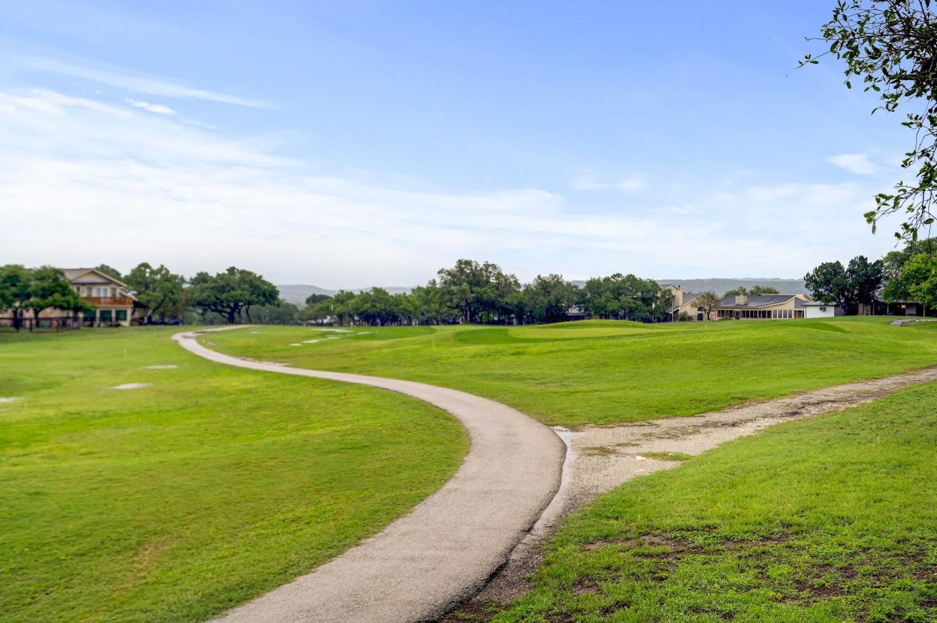 The Overlook is a small patio home community that has a community pool and is very close to all the fun things that Wimberley has to offer. 212 Overlook sits just off of the 14th green and the 15th t-box with long distant views and an amazing Oak tree just outside the back door. This one story home has a split floor plan with two living areas, two bedrooms and a full bath at the front of the home and a primary bedroom and bathroom at the back of the home facing the golf course. The kitchen and dining area are open to the main living area with built in bookshelves and a wood burning fireplace. In the secondary living room there is a built in desk. You could use this as a tv room, office, formal dining or craft room. It has beautiful hardwood floors and has a pass through bar area to the kitchen. The Overlook POA manages the grounds and the pool area. They also only allow up to two rentals in the patio home community, which encourages a sense of pride in ownership. This home is close to the hike and bike trail which leads down to the Blue Hole Regional Park. All the restaurants and shopping on the square is just 8 minutes down the road. Come and see what makes this little community so special.