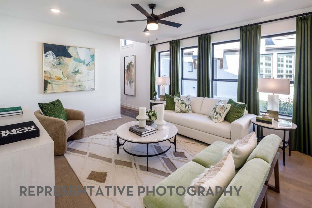 Model home plan! Gourmet kitchen with ample storage space and large center island. Soaring ceilings to upstairs game room big enough for pool table or shuffleboard and features a separate entertainment room! Freestanding soaker tub with separate shower at primary suite. Cozy living room ready to host. Smart home technology, upgraded landscaping, full sod and sprinkler system included!! Home is under construction with an estimated completion of August 2026. Buyer still has time to personalize options.