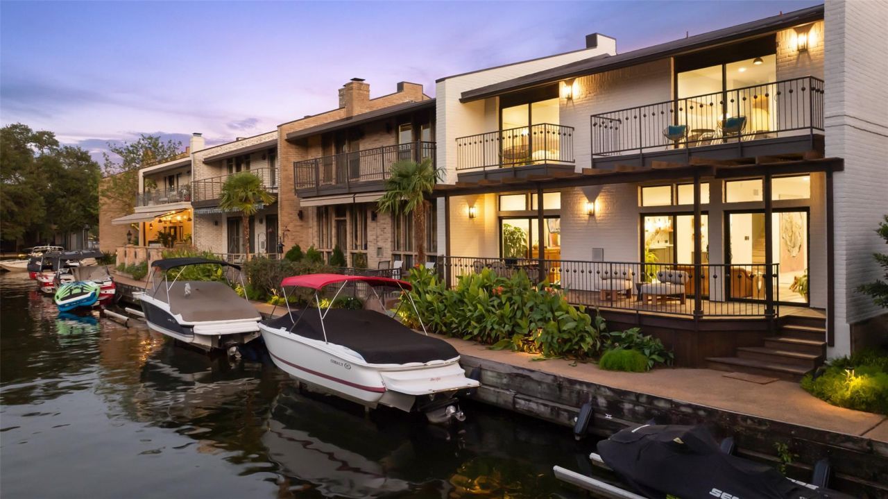 Situated within The Harbor on Lake Austin, this fully renovated residence pairs modern sophistication with timeless craftsmanship. Every detail has been thoughtfully considered?limestone floors, zellige tile, and marble surfaces bring texture and warmth, while custom Moroccan fixtures introduce an artisanal touch. The result is a home that feels both elegant and livable, embodying the best of refined lakeside living. Thoughtfully reimagined interiors open seamlessly to the outdoors, where expansive windows frame serene lake views and invite natural light into each room. Multiple balconies and terraces extend the living experience, creating perfect settings for morning coffee, alfresco dining, or gathering at sunset. Each space balances openness with intimacy, offering comfort while keeping the lake always within sight. A private boat slip with a lift ensures direct access to Lake Austin, making time on the water simple and enjoyable. This turn-key offering is complemented by a curated designer package from Love County Interior and Design, including art sourced from local gallery Marthas. The designer package and art is all available for purchase. Just minutes from downtown Austin, this residence offers a rare opportunity to enjoy both sophisticated design and the ease of true lakefront living.