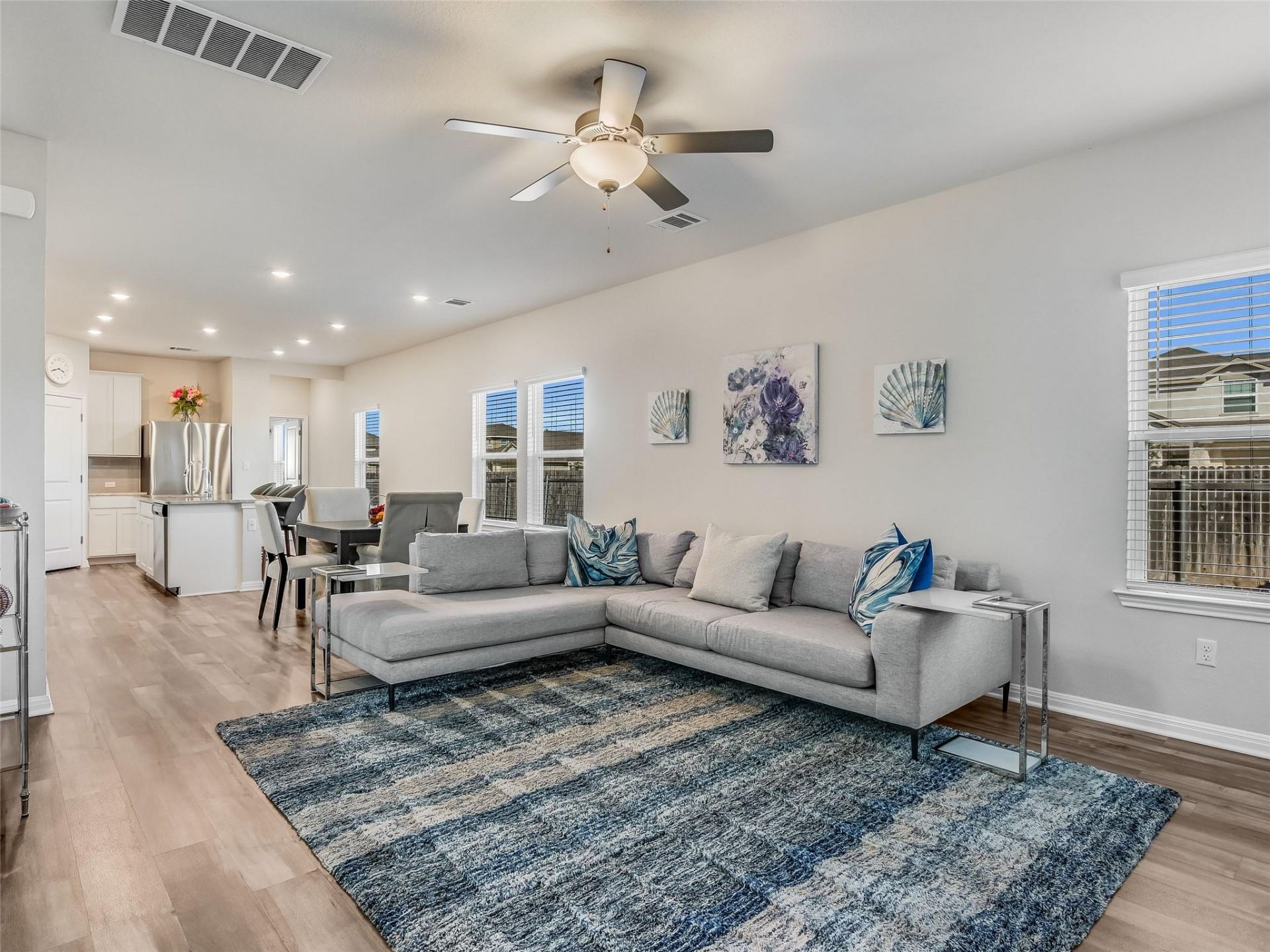 Built in 2022 by Meritage Homes, this corner-lot gem in Durango Farms delivers the layout, upgrades, and location buyers are searching for ? and rarely find at this price. The floor plan just works: primary suite on the main floor with dual vanities, walk-in shower, and walk-in closet, plus a second bedroom and full bath downstairs ideal for guests or multigenerational living. Upstairs adds two more bedrooms, a full bath, and a versatile second living area perfect for a game room or kids' retreat. The open kitchen features a gas range, island with seating, and pantry flowing naturally into the main living space. Outside, over $10,000 in professional landscaping and hardscape ? including a stone pathway from front to back ? is maintained by a WiFi-controlled in-ground sprinkler system. Sellers spared no expense on the details: whole-home water softener, reverse osmosis filtration, smart home wiring, fiber internet, full gutters, and all wall-mounted TVs convey. Community amenities include a dog park, basketball court, playground, and green space, all minutes from the Hutto Co-Op District. Move-in ready, priced right ? come see it for yourself.