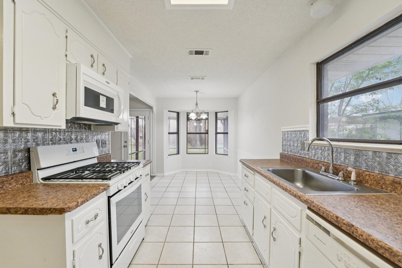 Welcome to 3213 Forest Hill Drive, the perfect starter home. This inviting property offers 3 bedrooms, 2 bathrooms, and a 2-car garage, providing a comfortable layout ideal for everyday living. Inside, you'll find a spacious living room with a raised ceiling and cozy fireplace, creating a warm and welcoming focal point for relaxing or entertaining. The kitchen includes a gas range, microwave, dishwasher, and ample cabinetry, and flows nicely into the breakfast dining area for easy meals and gatherings. Flooring includes stylish laminate in the living room and hallway with carpet in the bedrooms for added comfort. The primary suite offers a standout retreat featuring dual vanity sinks, generous cabinet storage, and an oversized walk-in tiled shower. Step outside to enjoy the large backyard and screened-in covered patio, perfect for relaxing evenings. Come check out this beautiful home!