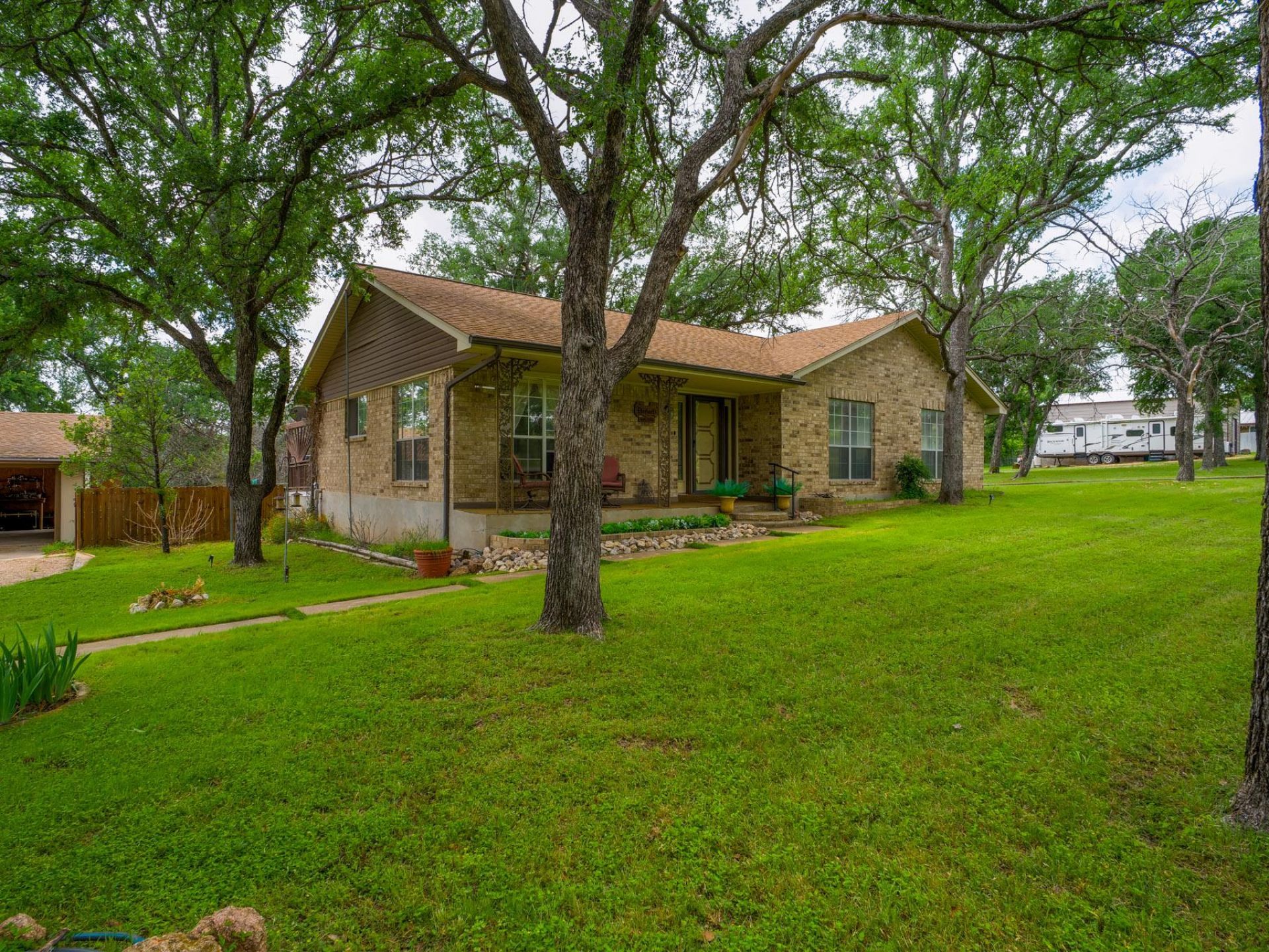 Spacious 3 bedroom, 2 bath classic brick home located in the heart of the beautiful Texas Hill Country, less than a mile from Lake Buchanan access! Situated on nearly half an acre, this property offers the perfect blend of comfort, functionality, and scenic surroundings. The open-concept floor plan features vaulted ceilings, a cozy wood-burning fireplace, and abundant natural light throughout. The primary suite includes a walk-in shower and generous closet space. Step outside to enjoy a spacious deck to enjoy the scenery and outdoors, a large fenced backyard with chain link fencing, backing up to a peaceful 10-acre ranch for added privacy. The property is well-equipped with a 2-car covered carport, a 40 RV port, and a versatile storage building/workshop with additional 2-car parking. Irrigation is supported by a private well, making outdoor maintenance a breeze. Whether youre looking for a full-time residence or a weekend retreat near the lake, this property offers space, flexibility, and a prime location to enjoy all that Hill Country living has to offer.