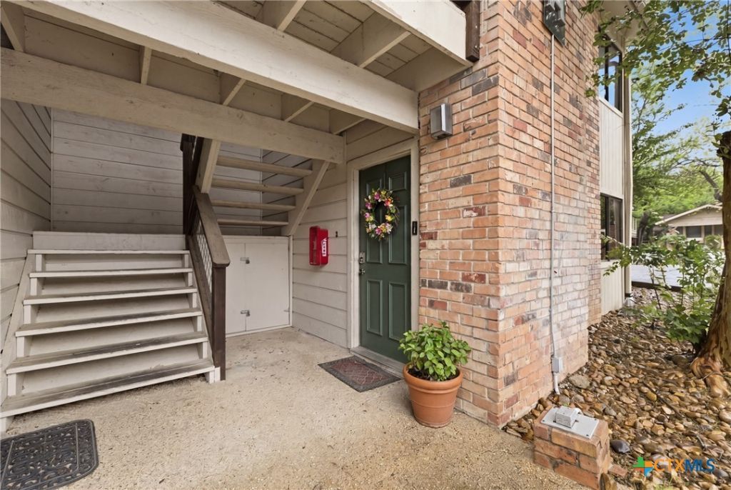 Charming 2-bedroom condo ideally located just minutes from Texas State University and within walking distance to vibrant downtown San Marcos! This well-designed floor plan features a convenient Jack-and-Jill bath separating both bedrooms, each with its own patio?perfect for relaxing or enjoying your morning coffee. The inviting living area features a wood-burning fireplace as a central focal point. The kitchen showcases a farmhouse-style stainless steel sink along with ample space for everyday living and entertaining. Appliance package consisting of refrigerator, washer & dryer already in condo convey with the sale. Whether you're looking for a primary residence, game-day getaway, or investment opportunity, this condo delivers unbeatable location and lifestyle with easy access to shopping, dining, entertainment, HEB, and the San Marcos River. If you think location, location, location?no need to look any further.