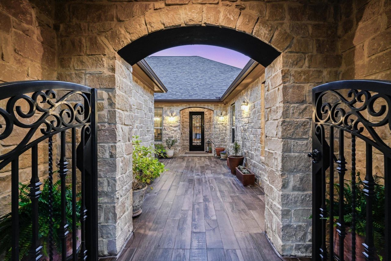 Rare opportunity to own a stunning single-story home in the highly sought-after Ranch at Brushy Creek community. This beautiful limestone home offers over 3,200 square feet of living space with 4 bedrooms and 3.5 baths, perfectly situated on a quiet cul-de-sac.An inviting stone courtyard with a wrought iron gate welcomes you and provides exceptional privacy. Inside, 10-foot ceilings, hardwood floors, and abundant natural light create an open and elegant feel. Plantation shutters accent every window for timeless charm.The spacious living, dining, and kitchen areas flow seamlessly?ideal for entertaining family and friends. The kitchen features an oversized center island, double ovens, a five-burner cooktop, built-in microwave, and ample cabinetry and counter space. A versatile office, butlers pantry, or kids study area sits just off the kitchen for added convenience.The guest suite is privately located near the 3.5-car garage for easy access. The spacious, oversized primary suite offers serene greenbelt and pond views through bay windows. Bedrooms 3 and 4 share a bathroom away from primary and guest suites. Step outside to a tree-filled backyard designed for relaxation and entertaining. Enjoy 180-degree views of the greenbelt and pond from the large covered patio and outdoor kitchen, complete with a stone fireplace, built-in grill, sink, and granite counters. The yard offers plenty of space for pets, a playscape, or a future pool, plus two sunny garden beds ready for planting. This home is ideally located with convenient access to major roads, top employers, and the popular Brushy Creek park area in Williamson County, which features miles of hike-and-bike trails and multiple scenic parks. Highly acclaimed Round Rock schools. Don't miss this one!