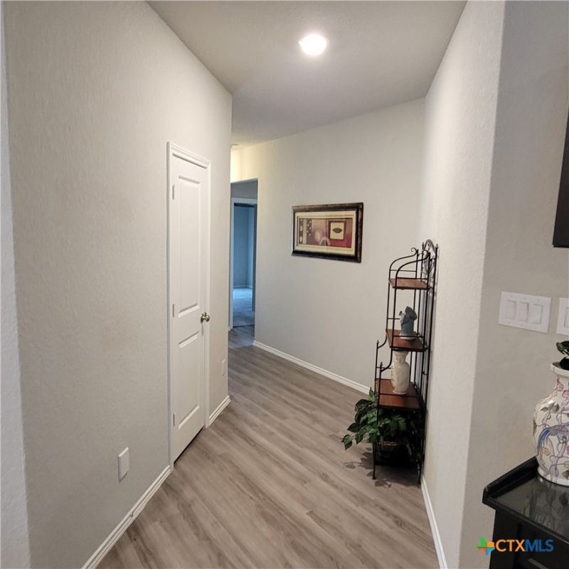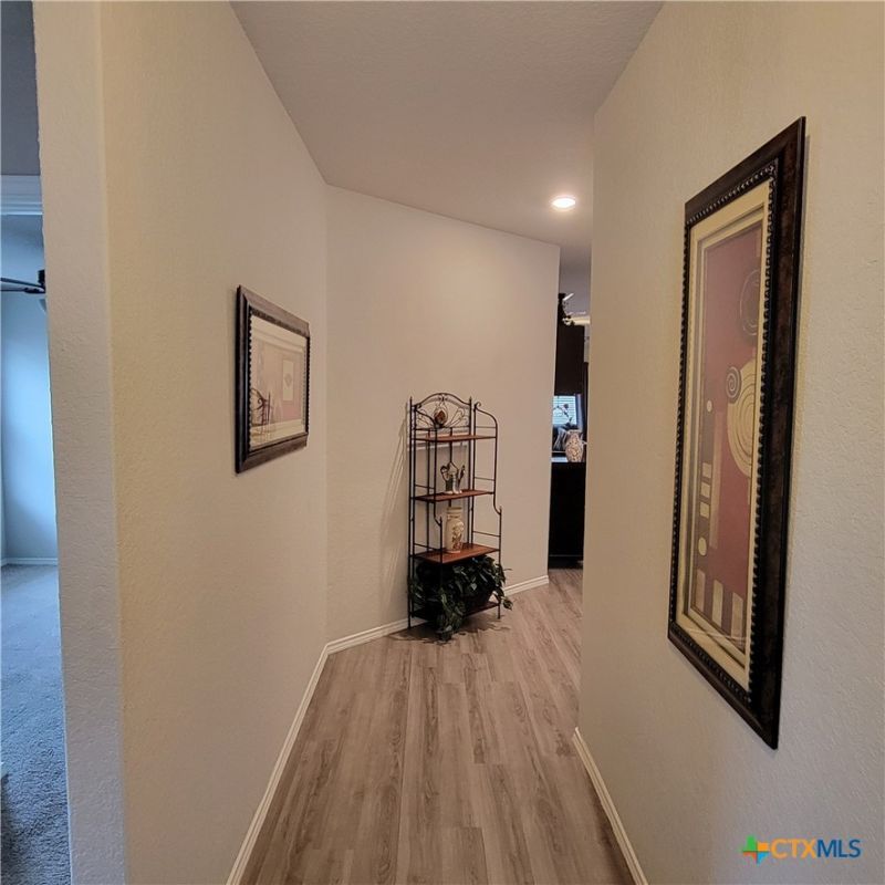 Beautiful home in the Hidden Trails subdivision. This home has an open floor plan with many extras. The home greets you with a long foyer as you enter the home. A large master bedroom and bathroom with a large master closet. The master-living area allows for relaxation in the large soaking tub. It has two secondary bedrooms and a full bath. The open floor plan provides a beautiful kitchen, dining and living room combo area. It has a bar area that is great for entertaining family and friends. It comes with a small, covered porch out back with an extended brick patio and a large backyard with plenty of space for BBQ's or gatherings. A small garden shed for storage. The home also has a modern sprinkler system front and back, a tankless gas water heater and whole house water softener. It also has amenities to set up a smart house system of your choice. The house has been recently re-roofed with high quality architectural shingles with rain gutters added to front and back. The spacious two car garage has a shelf area for extra storage. There are plenty of amenities for you to enjoy in the Hidden Trails Subdivision with multiple parks, pools and trails. There is also shopping and dining withing driving distance.