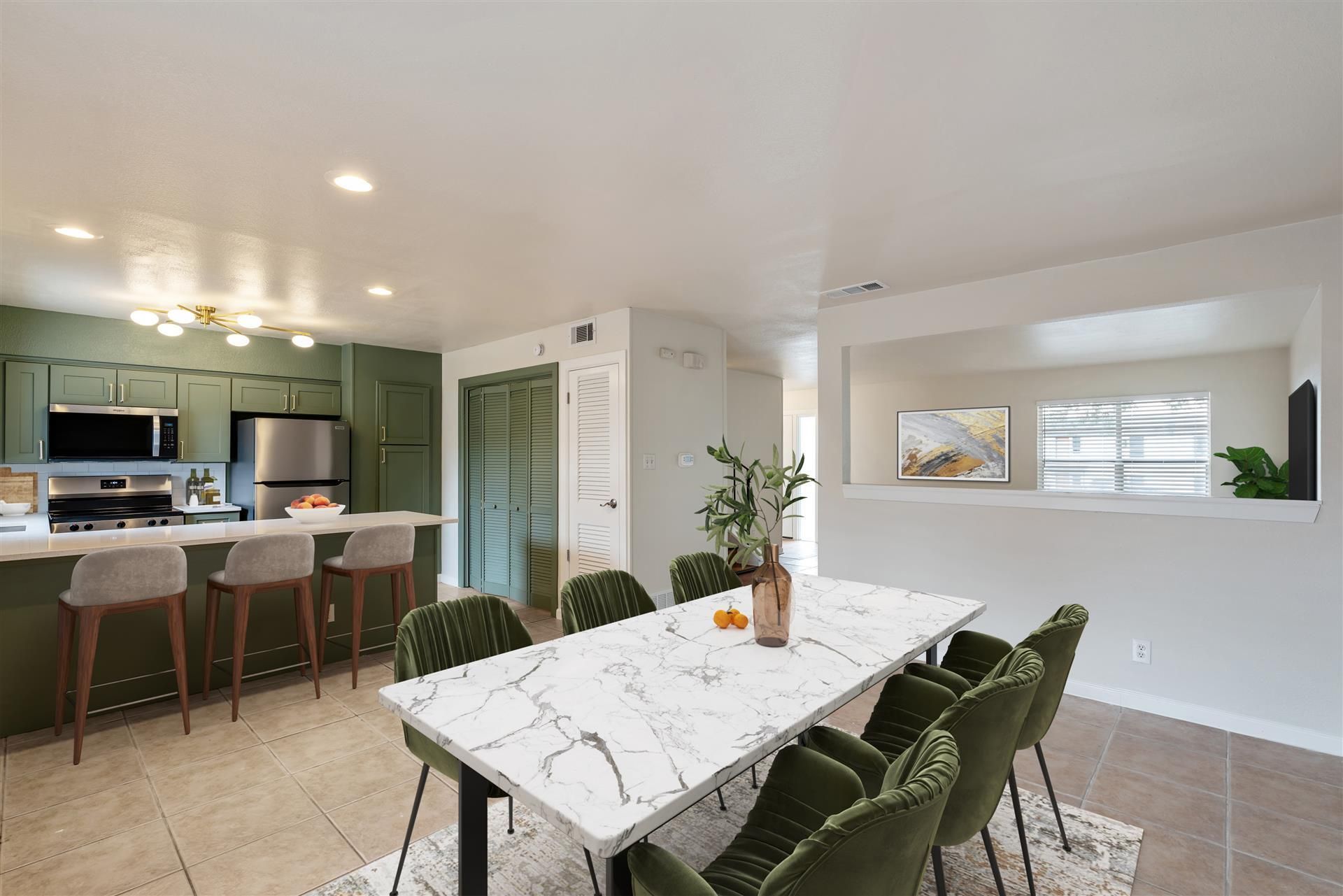 Gorgeous Remodeled Condo Available for Immediate Move-In. This two-story, 1500+ sq. ft. townhome-style unit features 3 bedrooms and 2.5 baths. Kitchen and all bathrooms; stunningly remodeled in March '26. Kitchen showcases olive green cabinets, quartz countertop with bar seating, modern light fixture, and stainless steel appliances, including a refrigerator. The open living space includes a kitchen, dining area, and living room. The downstairs features tile flooring, and the upstairs showcases wood-like vinyl planking - no carpet. The half bathroom is located downstairs, and the three bedrooms with ceiling fans and the two full bathrooms are located upstairs. Primary bedroom features an ensuite bathroom and a walk-in closet. Patio door off the dining area opens to an enclosed patio, including a large storage cabinet. The wooden gate off the back patio leads to the carport - two assigned parking spaces. This quadplex is ideally located close to the Mueller Market District, I-35, Hwy 183, Hwy 290, Downtown Austin, and public transportation. Google Fiber Available. Come see today!
