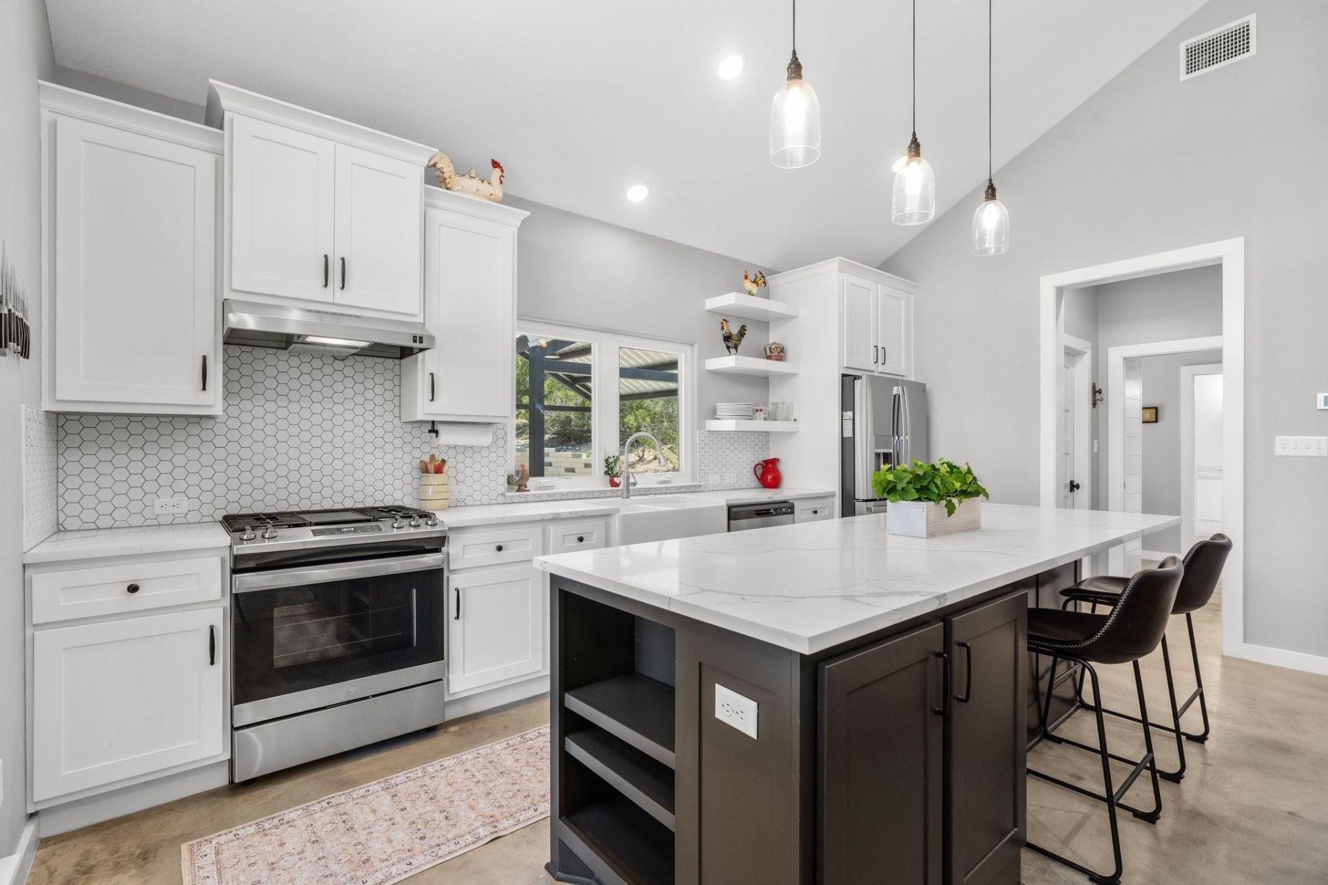 Welcome to 631 Lakeside Dr, where true country living is paired with the benefit of being just 15 minutes from town. This Dog Trot style home, built in 2021, sits on 7.10 acres of scenic land in a quiet setting surrounded by wildlife and wide-open views. Enjoy stunning sunsets from the front porch, while the screened breezeway and covered porches create seamless indoor-outdoor living. The property is thoughtfully set up for both function and lifestyle, featuring a 2-car carport with electricity, a new 12x24 storage building with windows and an oversized door, and a new 8x12 insulated well house with power. A private water well, septic system, bridge over a wet weather creek, walking paths, and fenced yard space make it ideal for those who value space and a connection to the outdoors. Inside, the approx. 1,404 sq ft home offers stained concrete floors throughout, a wood-burning fireplace with gas starter, and a custom mesquite mantel that adds warmth and character. The kitchen is designed for both everyday living and entertaining, complete with a 9-foot island, under-counter microwave, gas range with griddle, custom cabinetry with soft-close drawers, walk-in pantry, and all new high-end appliances. Additional features include a tankless water heater, oversized bedrooms with large walk-in closets, and beautifully finished bathrooms with custom tile and deep soaking tubs. Vaulted ceilings in the main living area enhance the open, airy feel. With light restrictions, the property also offers flexibility for future additions or potential short-term rental use, adding even more opportunity to this already special Hill Country property. **Buyer and Buyer's Agent are responsible for conducting all due diligence and verifying all information, including but not limited to property condition, zoning, permits, taxes, and square footage.**