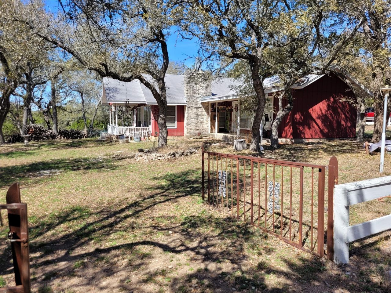 Offering the original ranch house of Sunset Canyon, situated on a beautiful 1.866-acre lot. The property is shaded by numerous majestic oak trees and backs directly to Cottonwood Creek, providing privacy, natural beauty, and a peaceful Hill Country setting. The home features cathedral ceilings, a loft, and the original stone fireplace, adding warmth and timeless character. A detached building with a kitchen, bedrooms, and bathrooms is also located on the property and, with a little work, could make a wonderful casita. A rare opportunity to own a spacious homesite with classic Texas charm. The home is furnished, as the seller is relocating out of the country, and the furnishings may be available for purchase with the sale of the home.