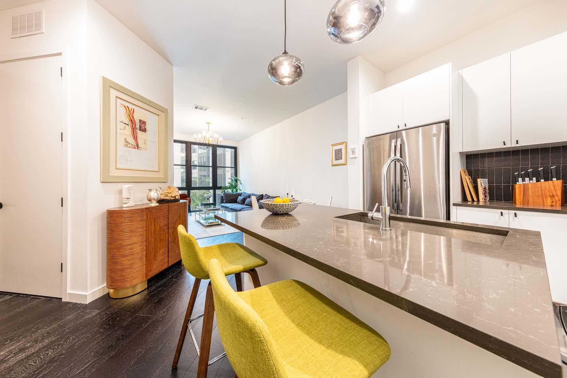 One-bedroom, one-bathroom residence at The Tyndall offering elevated East Austin living just minutes from top restaurants, the Lady Bird Lake trail, Dell Childrens Hospital, and more. This A1 floorplan features an open-concept living and kitchen layout, along with a spacious en-suite primary bedroom complete with dual vanity and tub/shower combination. Thoughtfully enhanced beyond typical units in the building, the home includes an updated AC unit and water heater, upgraded light fixtures, a custom Roman shade in the primary bedroom, and roll-down blinds in the living area, adding both style and functionality. Positioned with a peaceful courtyard view and set away from I-35, the unit offers a quieter, more private setting without compromising convenience. Residents enjoy access to resort-style amenities including a pool deck overlooking Downtown Austin, outdoor grill and shaded pergola, courtyard retreat, full outdoor kitchens, private lobby with concierge, media-equipped conference room, and fitness center. Lease term 12?24 months. One reserved parking space. Tenant responsible for all utilities. No smokers. Pets negotiable (limit 2); fees up to $750 for larger dogs see agent for details.
