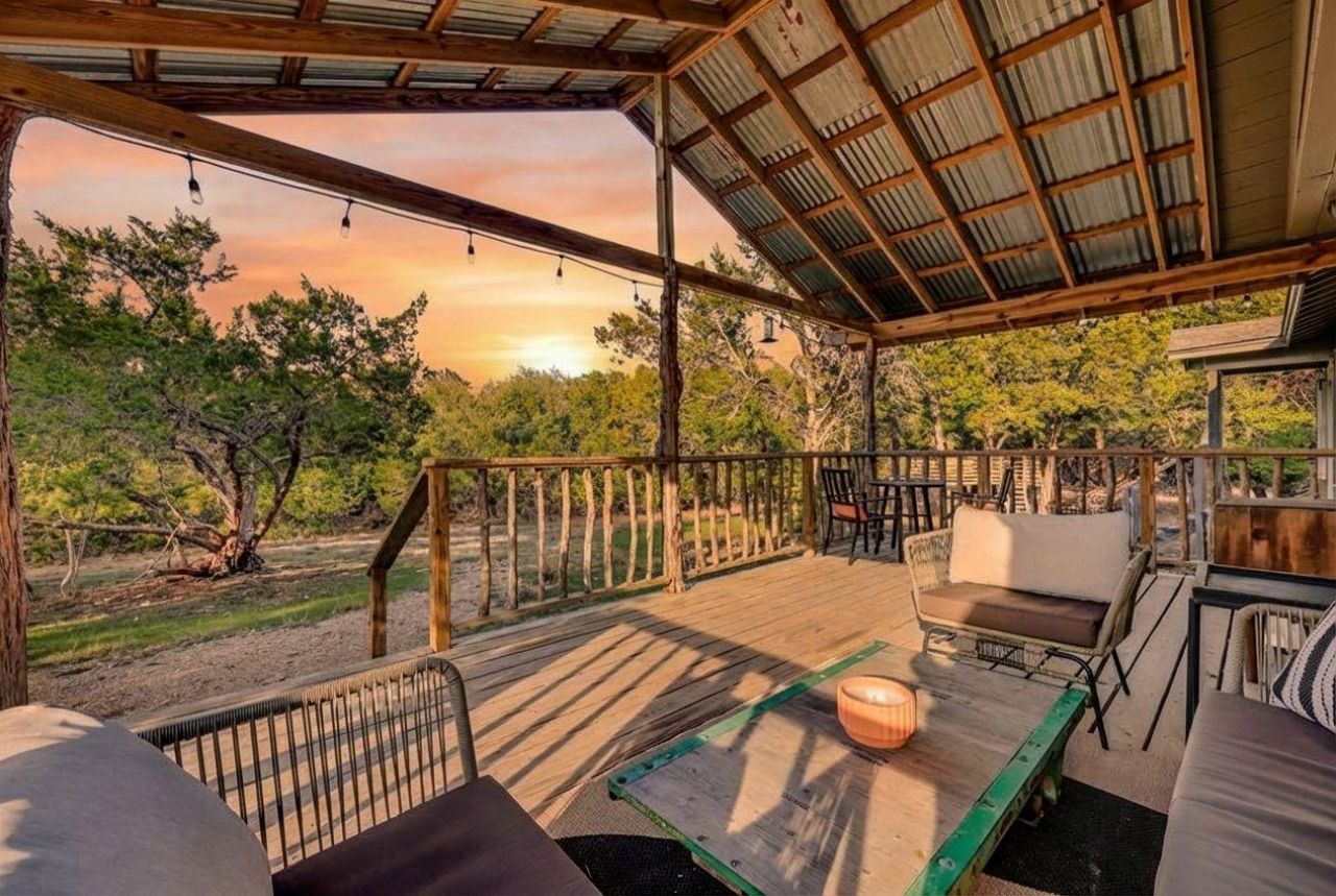 Discover the perfect blend of 1947 charm and 2023 comfort on almost 5 minimally restricted acres. Relocated from South Austin and fully reimagined, this home features original oak floors, unpainted trim, and classic wood-paned windows, paired with modern upgrades like central A/C, black suede quartzite counters, and a farmhouse sink.This hill country oasis features cleared grounds, private trails, a fire pit, and a charming treehouse. Enjoy year-round comfort on the oversized covered front porch. Excellent location offering country serenity just 10 minutes from Wimberley, under 40 minutes to Austin, and 5 minutes from local staples like Hays City Store, mean eyed cat and more. Enjoy year-round access to a community pool and clubhouse, plus an annual neighborhood music festivalTurn-Key Ready: Proven history as a highly-rated short-term rental. Most furnishings are available for purchase, making this a truly seamless transition.Whether you're looking for a peaceful private residence or a successful investment property, this property offers a unique, character-filled lifestyle that is rarely found.