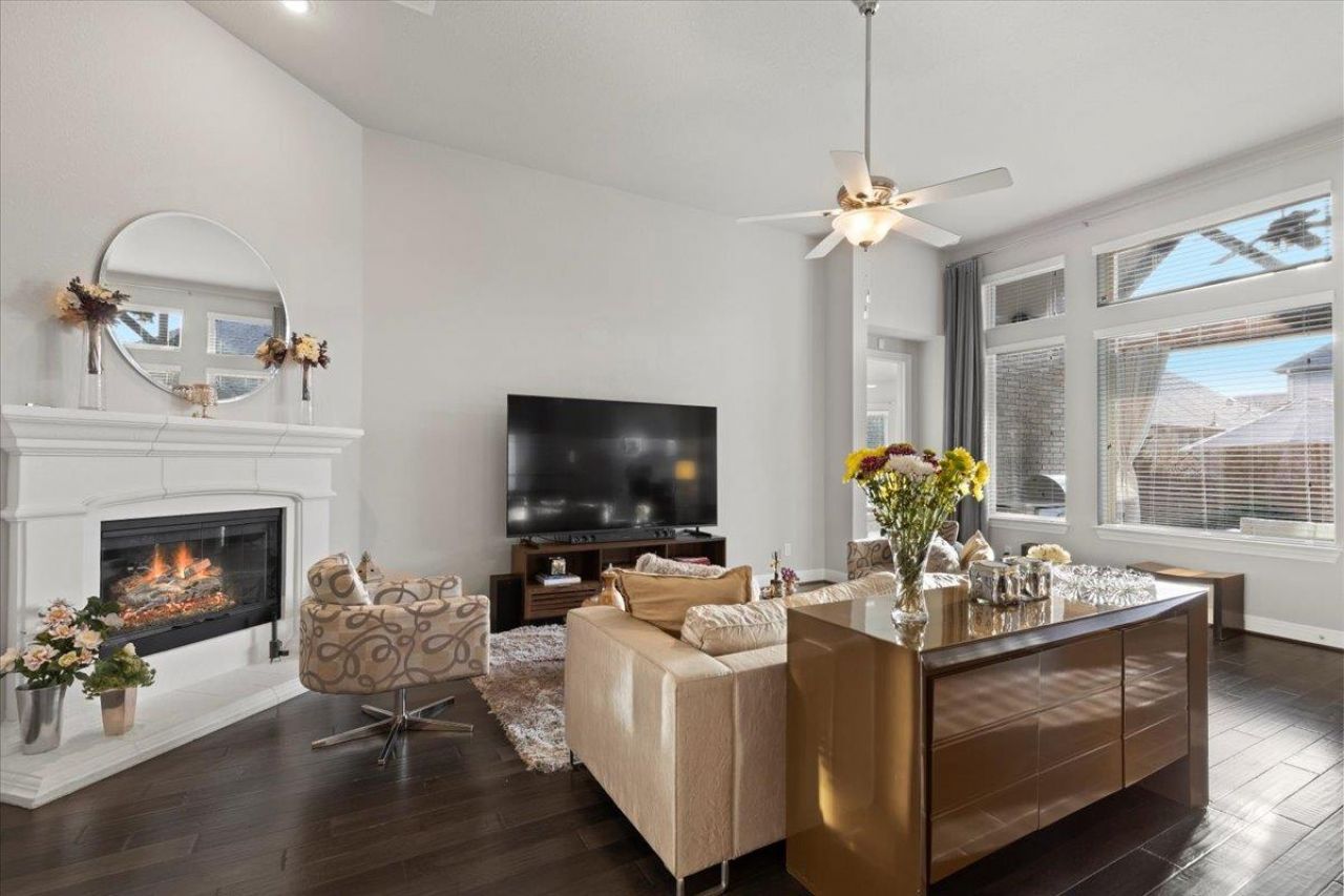 Located in sought-after Leander Crossing, this exceptional 4-sides brick home offers 3 bedrooms, 2.5 baths, a home office, a built-in media room, a private heated pool, & a rare 3-car garage - all thoughtfully designed on a single level. Bright, open, & move-in ready, the home sits directly across from a community park & blends modern convenience with relaxed resort-style living. A welcoming front entrance with upgraded chandeliers sets the tone as you step inside to an open floor plan showcasing rich hardwood flooring, high ceilings, & abundant natural light throughout. The spacious living room is anchored by a gas log fireplace & flows seamlessly into the gourmet kitchen, which features a large center island with breakfast bar seating, granite countertops, ample cabinetry, & stainless-steel appliances including a gas cooktop. A touch sink & refrigerator convey with the home. The private owners suite is a true retreat with a generous walk-in closet & a luxurious bath featuring separate granite vanities, an oversized walk-in shower, & a soaking tub. Two secondary bedrooms share a well-appointed Jack-&-Jill bathroom. The dedicated media room includes built-in speakers, while the home office provides a quiet work-from-home space. A large laundry room with added storage adds convenience, & the washer & dryer will convey. Out back, enjoy a covered patio with outdoor kitchen, a fenced yard, & a heated in-ground pool - perfect for year-round entertaining. Six mature trees along the back fence provide added privacy. This home is equipped with premium smart features, including a smart garage opener, smart HVAC thermostat, & smart lighting, plus pool smart features with a smart pool pump & smart pool lights. Additional technology includes automatic shades & indoor/outdoor cameras that will remain, along with a whole-home water softener & filtration system. With no pets ever having lived in the home & meticulous care throughout, this property is truly move-in ready.
