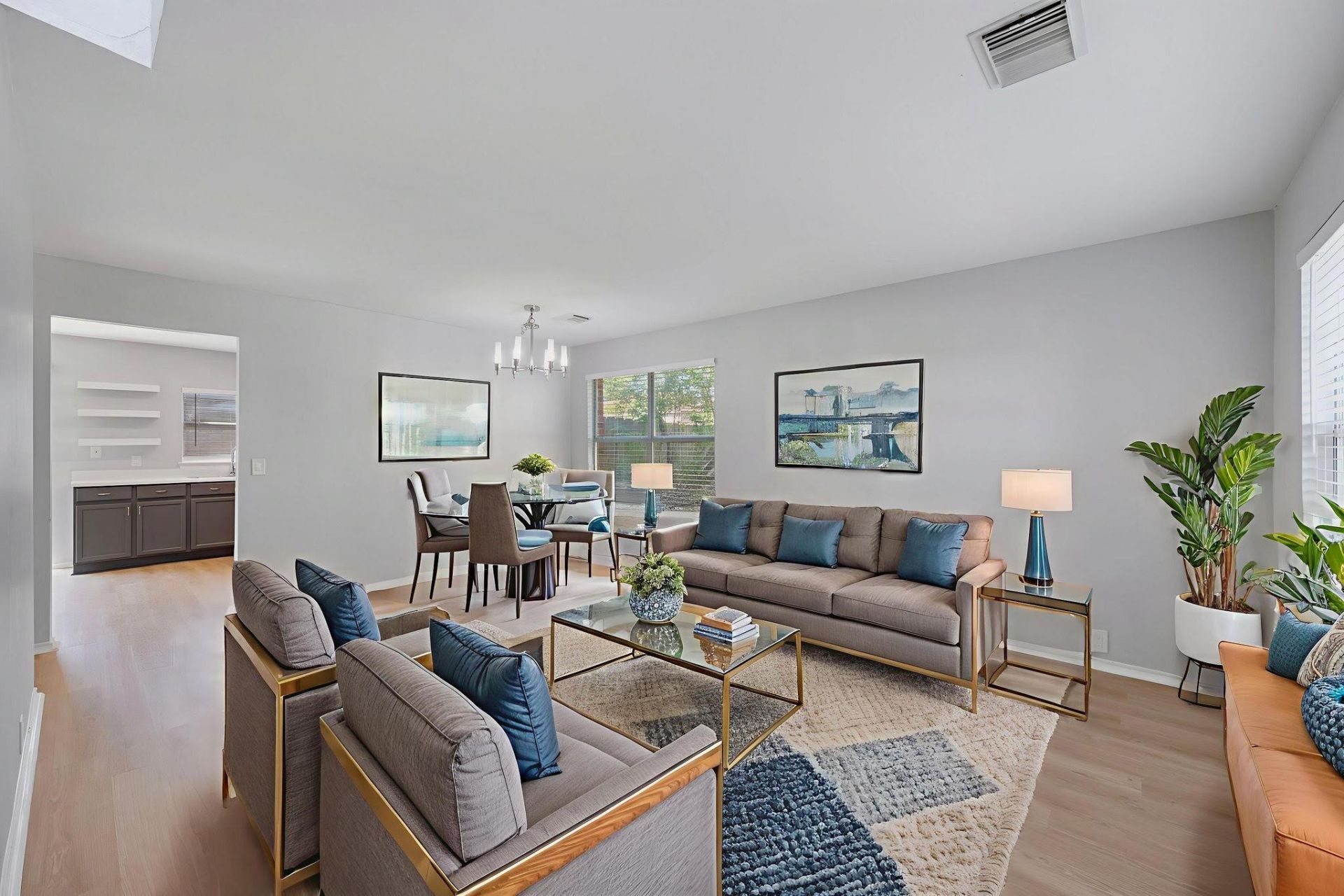 Welcome to this stunning 4-bedroom, 2.5-bathroom home located in the vibrant community of Pflugerville, TX. This two-story gem boasts a spacious living room and family room, perfect for entertaining or relaxing. The kitchen is a chef's dream, equipped with stainless steel appliances, including a dishwasher, refrigerator, electric range and microwave. The laminate flooring throughout adds a touch of elegance and is easy to maintain. Each bedroom is fitted with ceiling fans and the master suite includes a soaking tub, separate shower, dual sinks, and a walk-in closet. Outside, you'll find a fenced yard with a sprinkler system, perfect for gardening or outdoor activities. The property includes a two-car garage for secure parking. The neighborhood offers a playground, adding to the charm of this community. This home is a perfect blend of comfort and modern living.